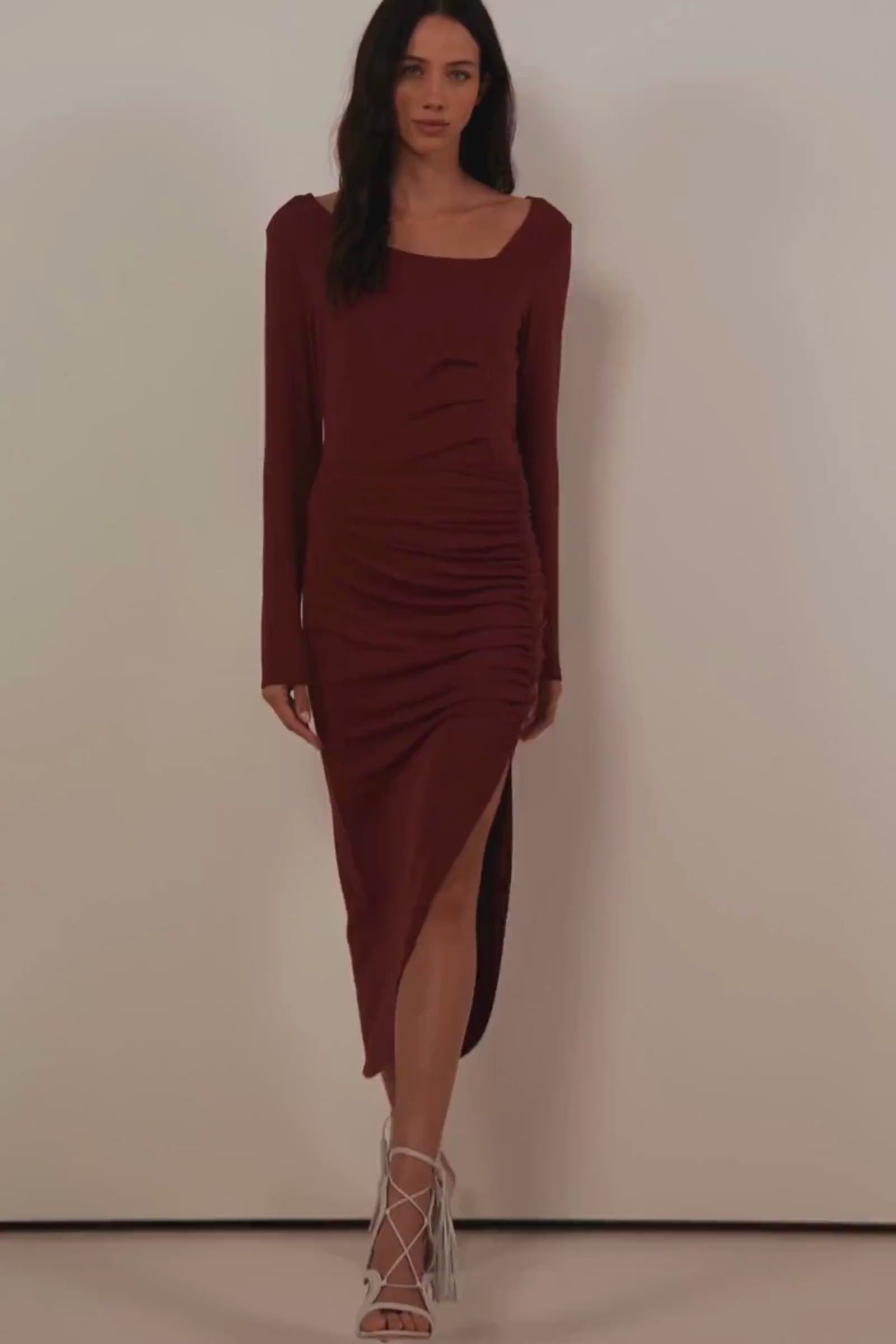 O modelo apresenta decote assimétrico sofisticado e detalhes de pregas estratégicas, que valorizam a silhueta e trazem informação de moda ao look. Com mangas longas ajustadas, a peça é ideal para composições de meia-estação ou inverno, funcionando tanto em produções casuais quanto em combinações mais refinadas.