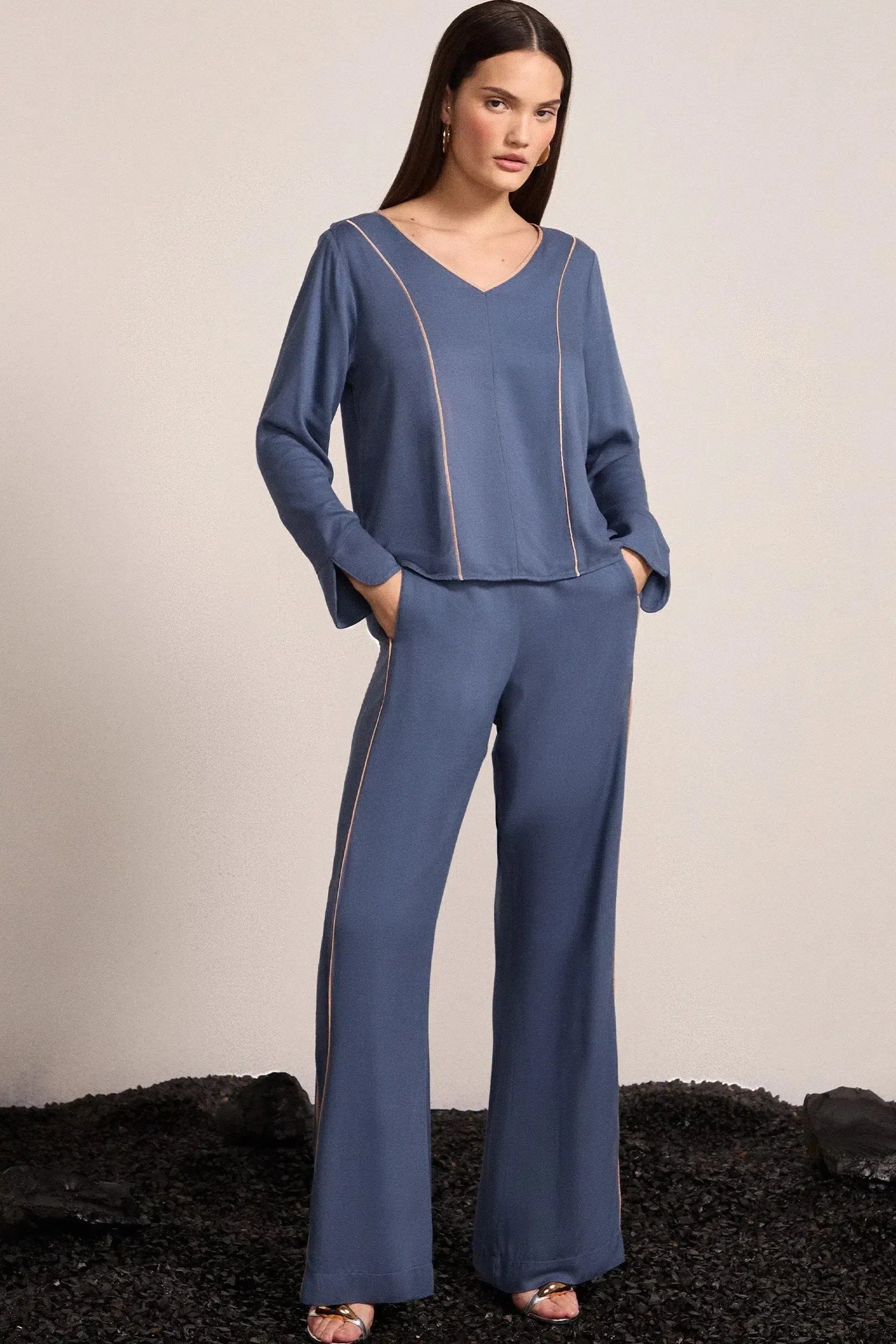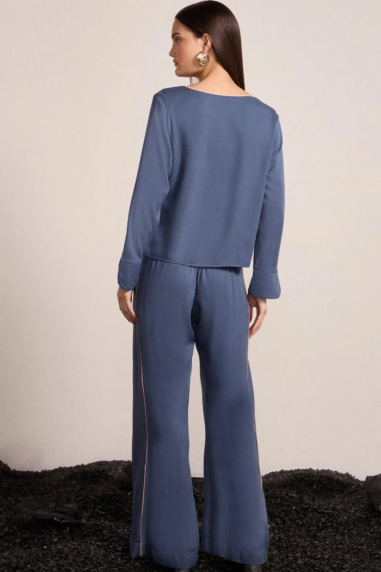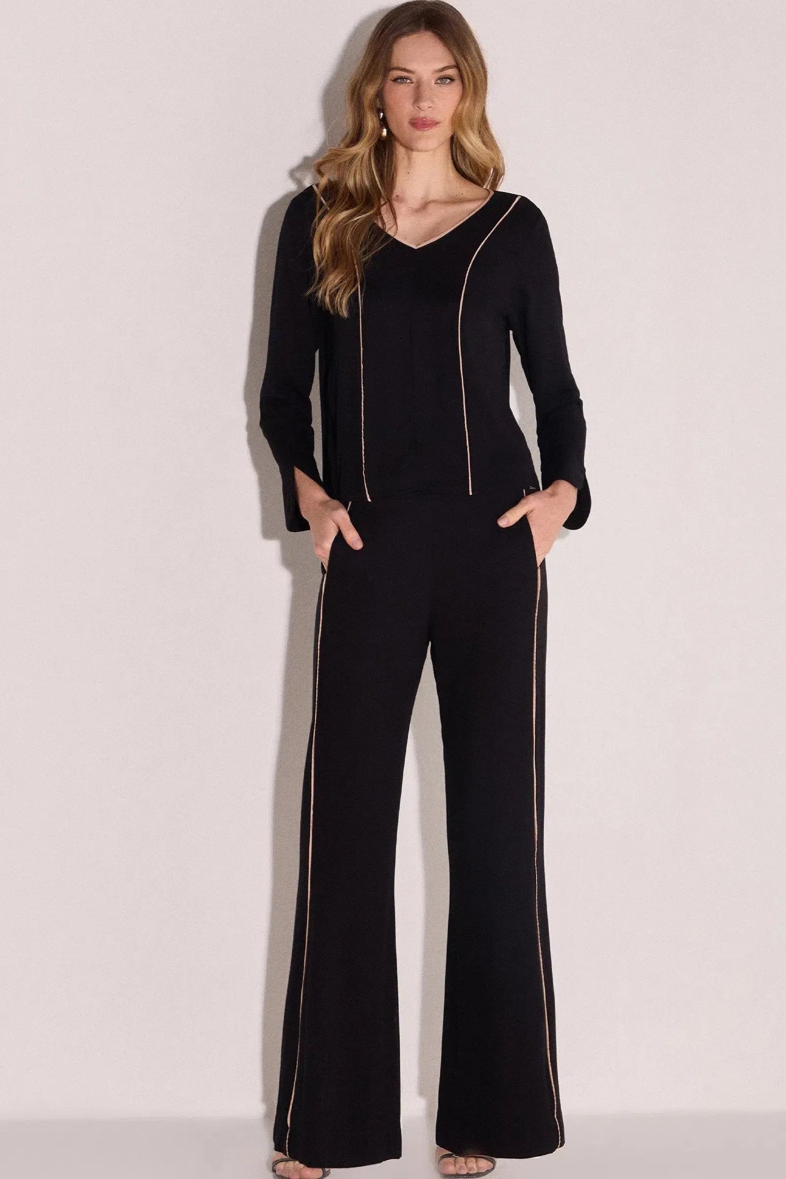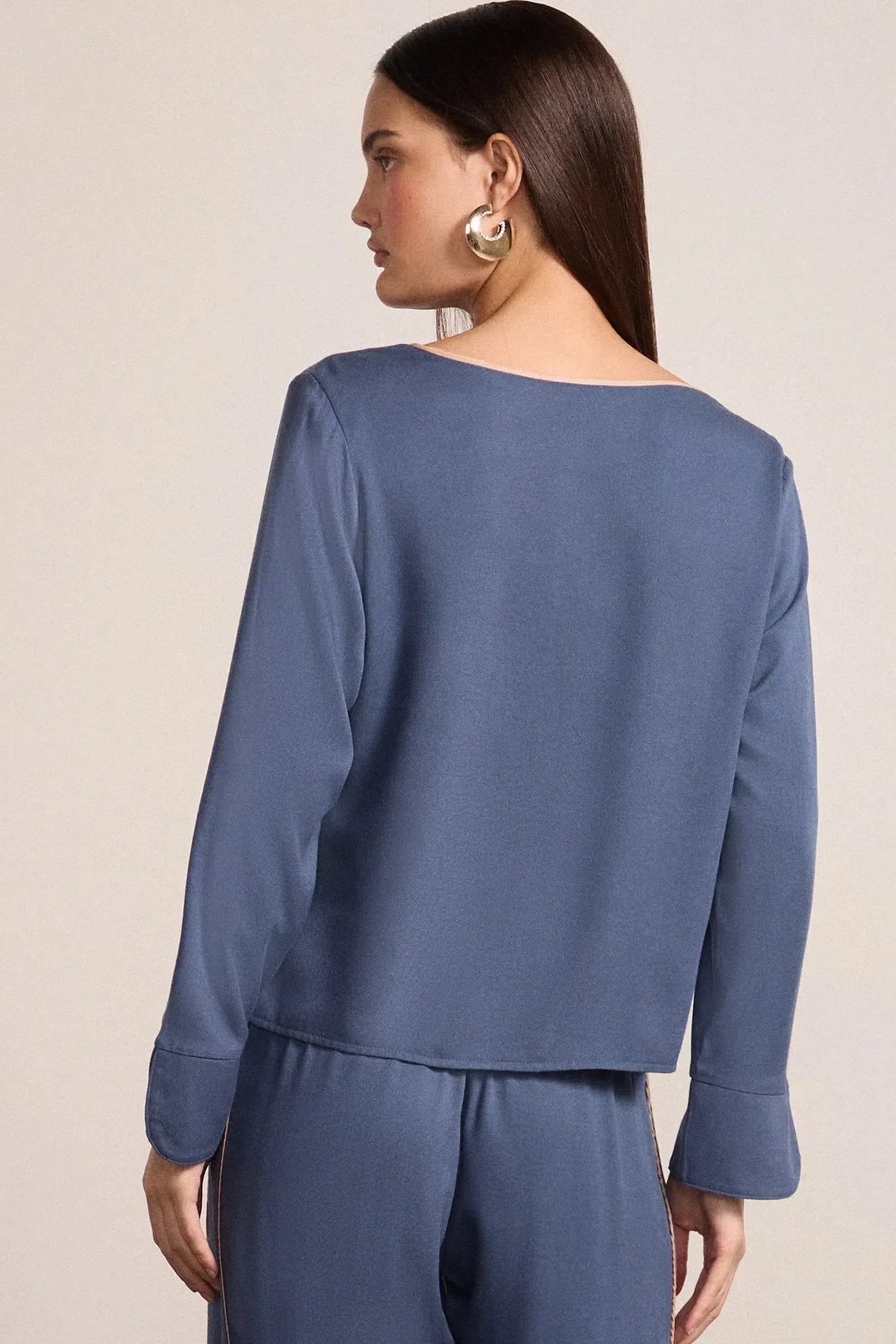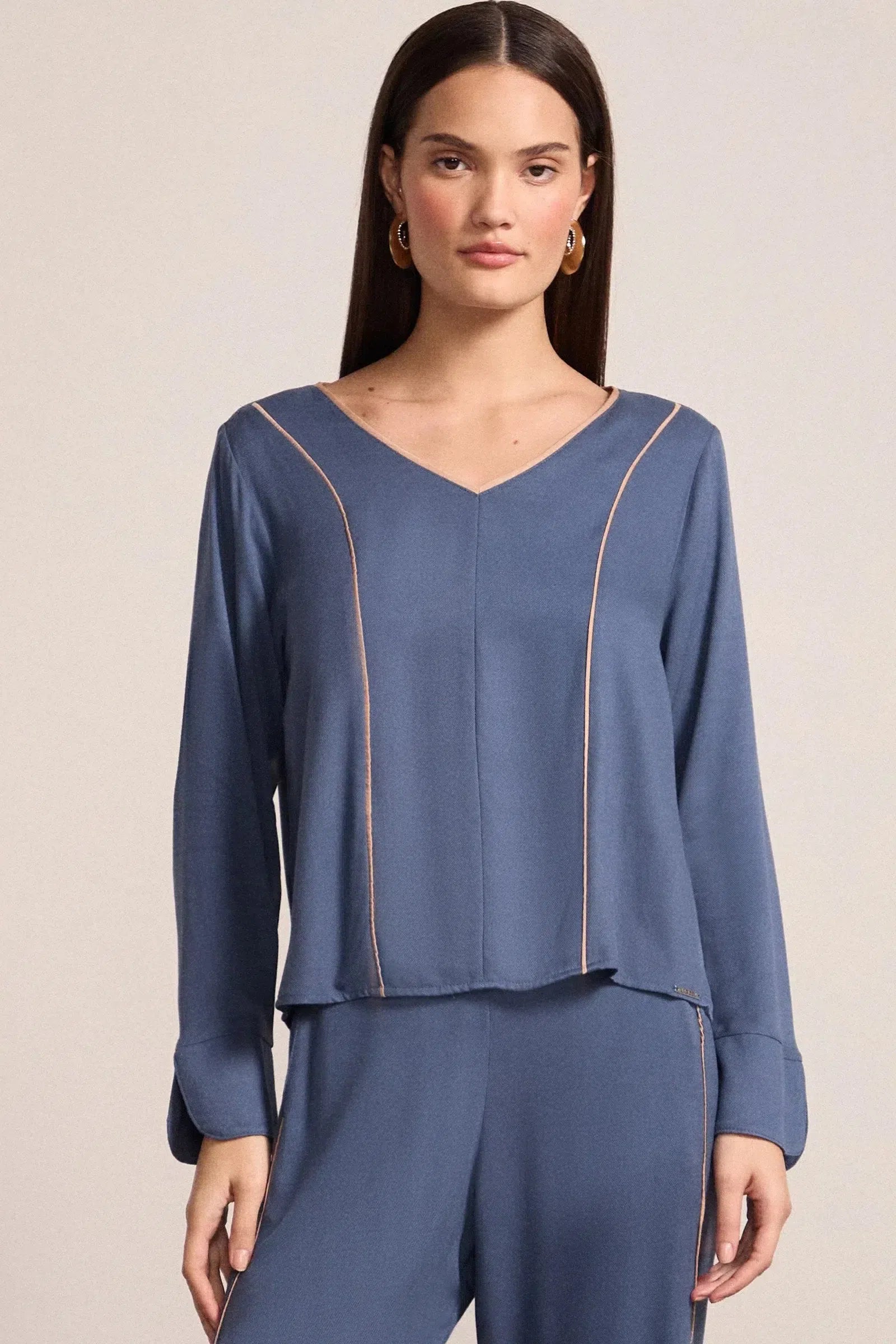Blusa Manga Longa em Viscose com Detalhes Contraste 82066 Linzzi