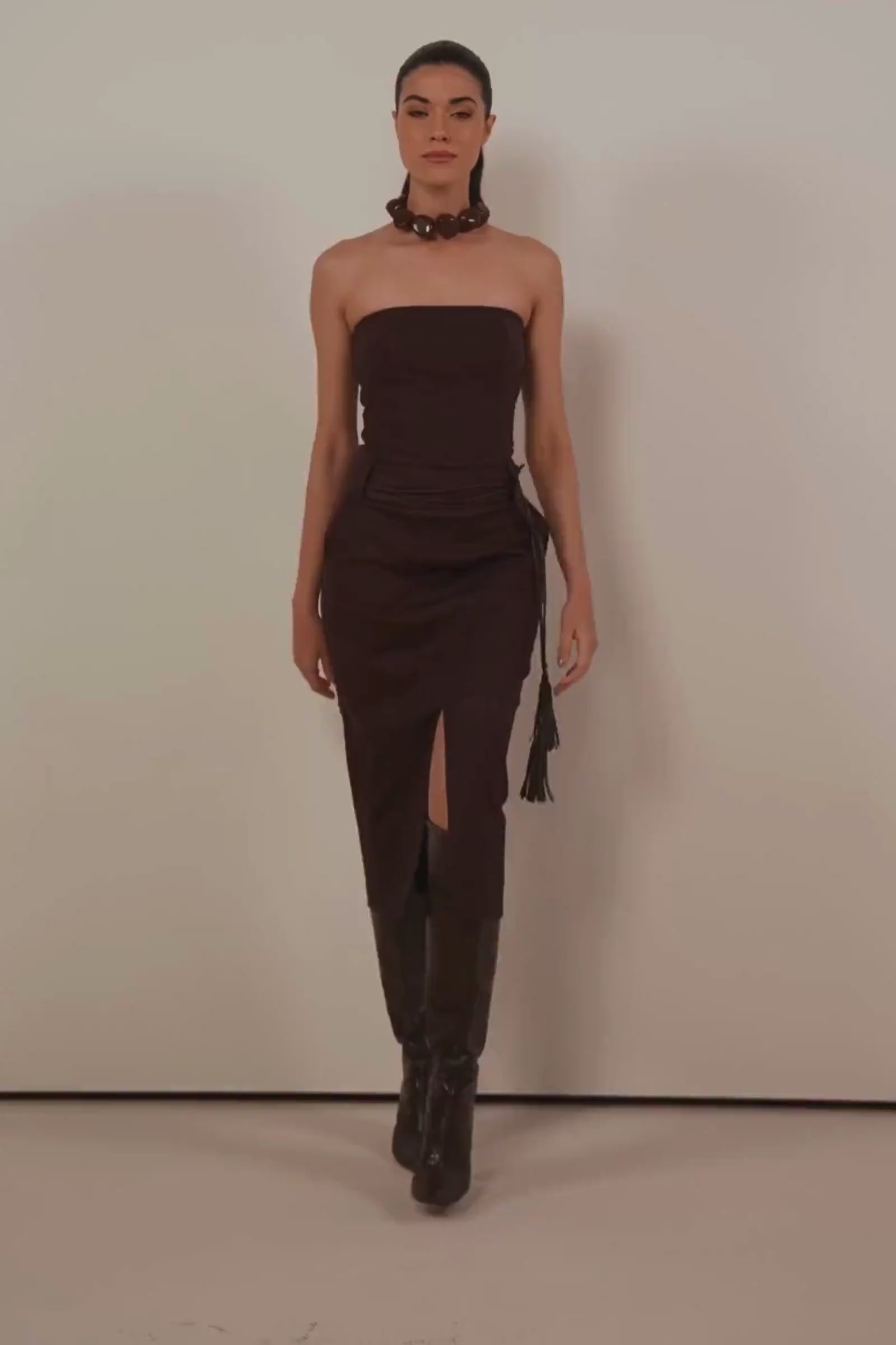 Blusa Sem Alças em Sarja Resinada A blusa sem alças em sarja resinada é a escolha perfeita para quem busca um visual elegante e moderno, com toque de sensualidade sofisticada. O design tomara-que-caia valoriza o colo e os ombros, trazendo feminilidade e imponência na medida certa. Nas costas, o acabamento em lastex garante ajuste perfeito ao corpo, proporcionando conforto e mobilidade, enquanto o zíper traseiro adiciona praticidade e acabamento refinado. O tecido em sarja resinada confere estrutura e leve brilho, tornando a peça ideal para composições que pedem impacto visual. A versatilidade desta blusa permite combinações tanto com saias de mesma proposta para um look monocromático poderoso, quanto com calças de alfaiataria ou jeans para produções equilibradas entre casual e sofisticado.