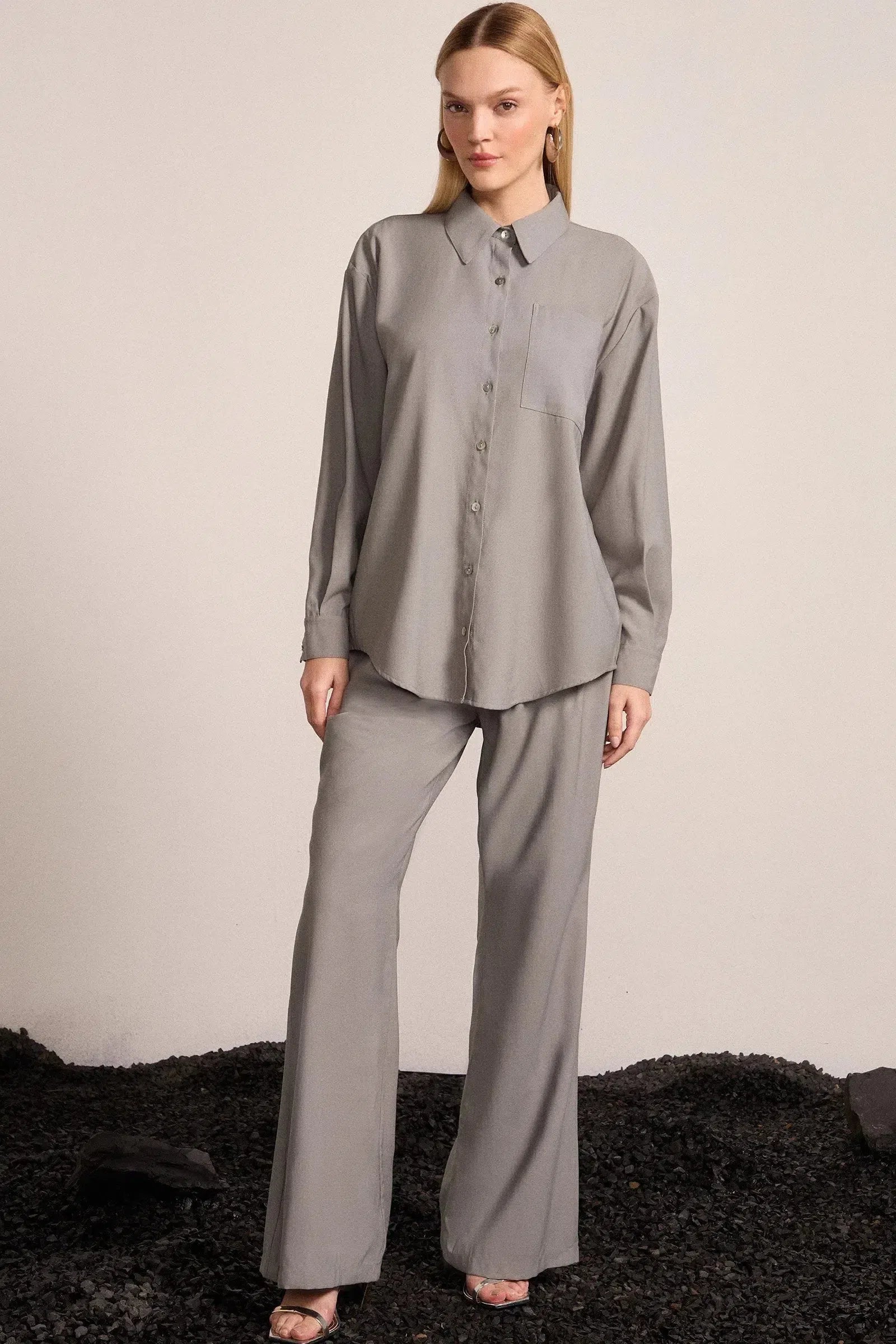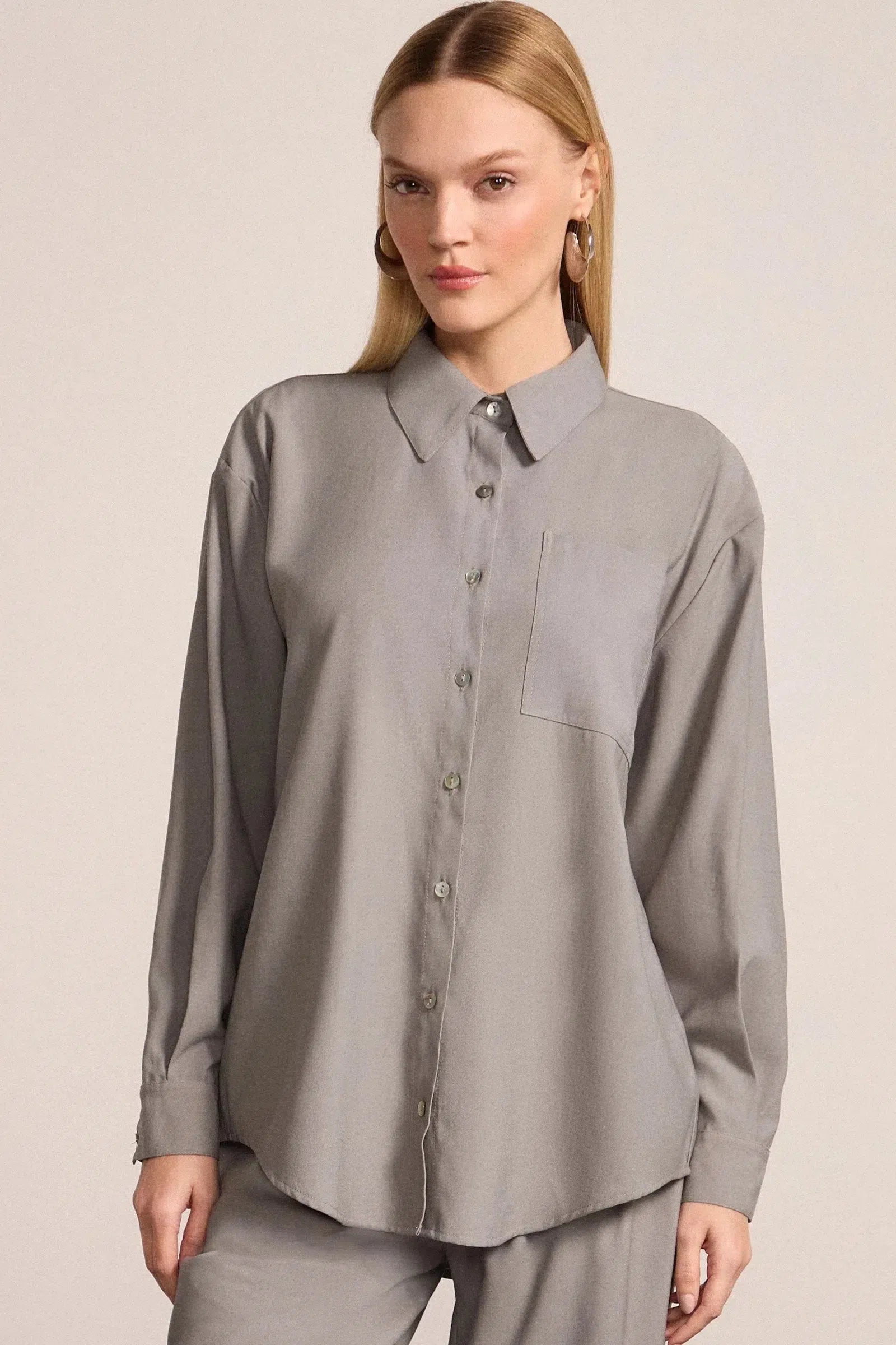 Nossa camisa alfaiataria é a escolha perfeita para mulheres que buscam um visual sofisticado e funcional. Confeccionada em um tecido de alta qualidade, essa peça proporciona um caimento impecável e um toque suave na pele. O detalhe do bolso funcional adiciona um toque prático e moderno, tornando-a ideal para diversas ocasiões, desde o trabalho até um evento especial.