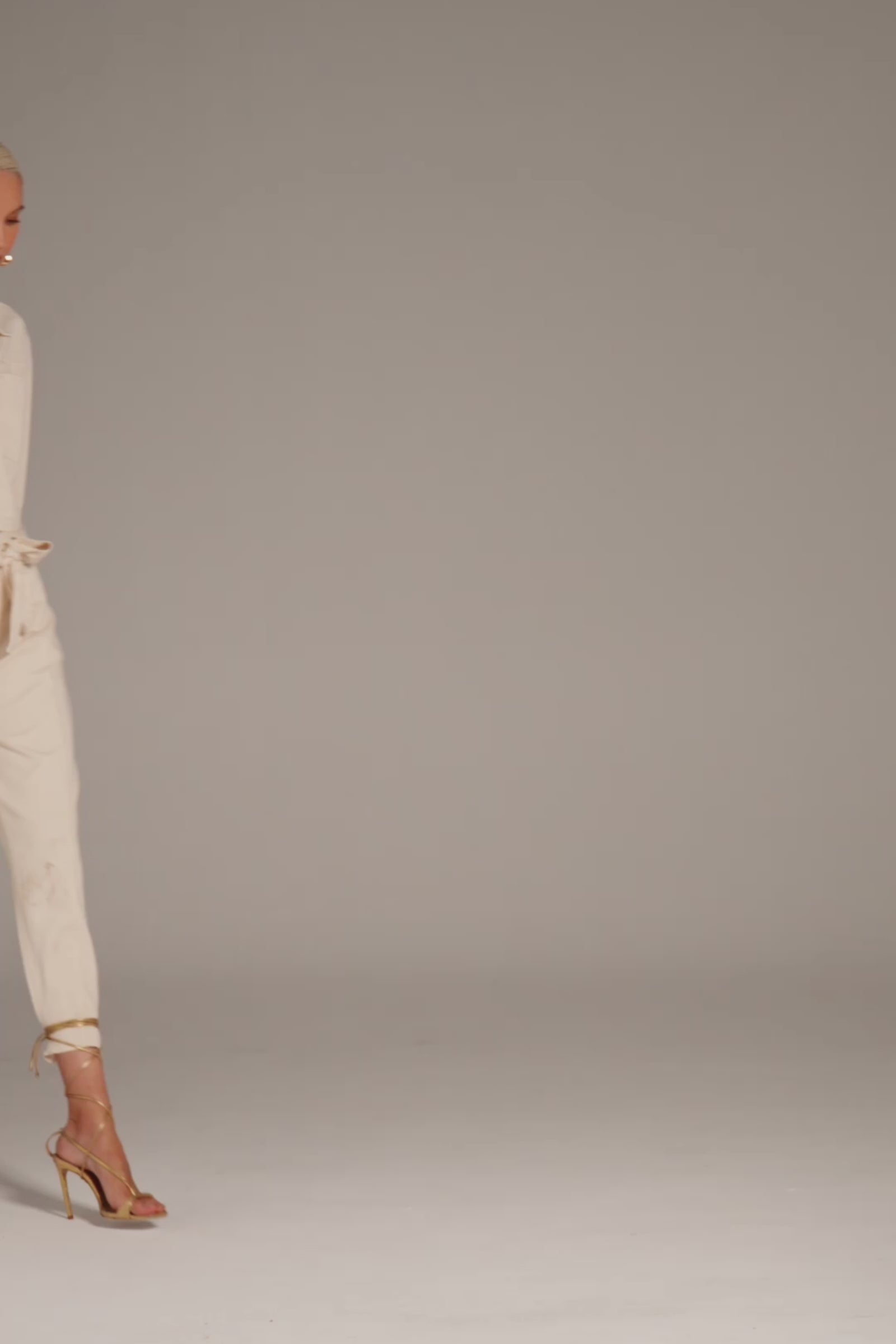 Jaqueta cropped com gola, abertura frontal e de punhos por botões, bolsos frontais. Em tecido Sarja.