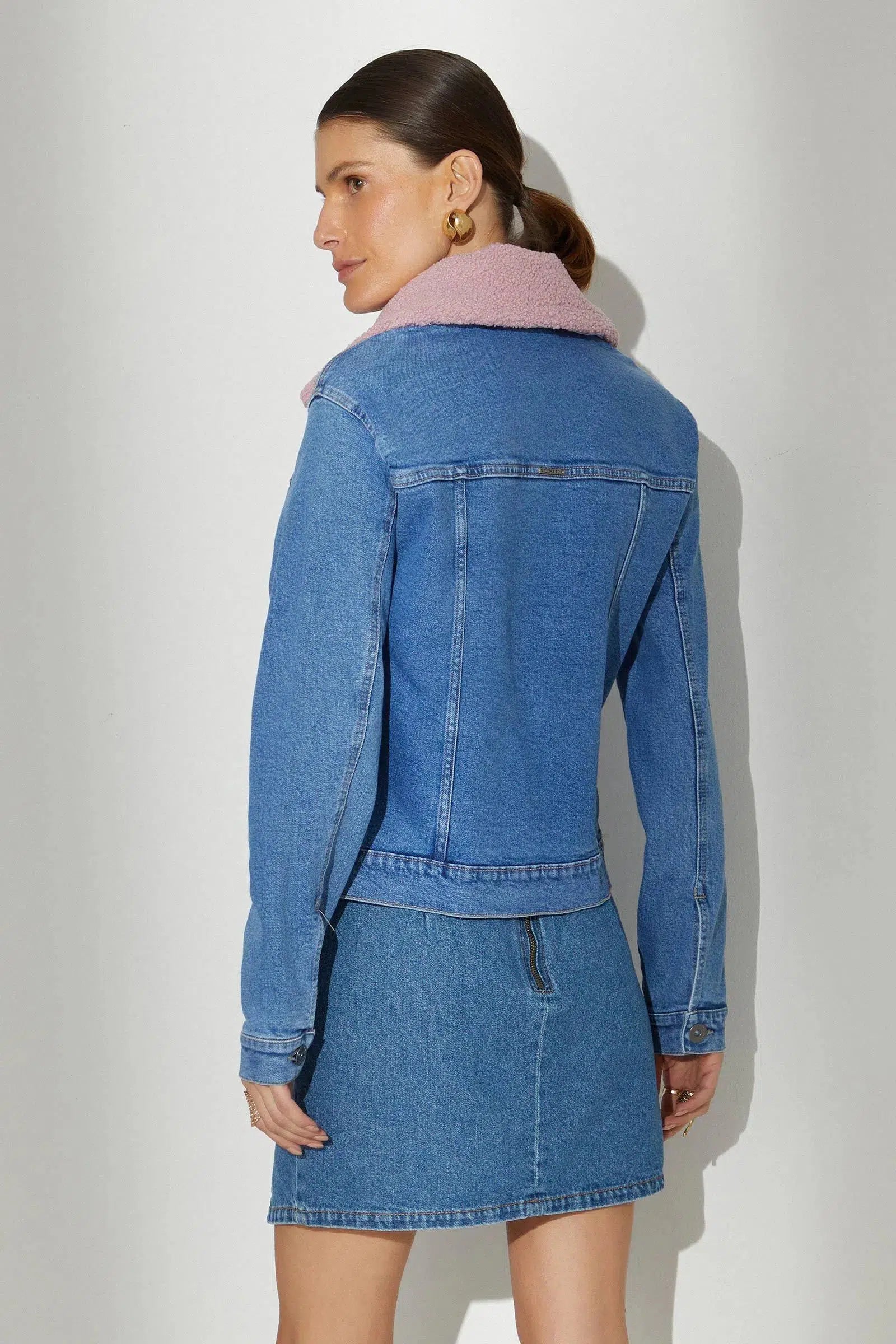 Jaqueta Jeans com Gola de Pelo 70105 Linzzi