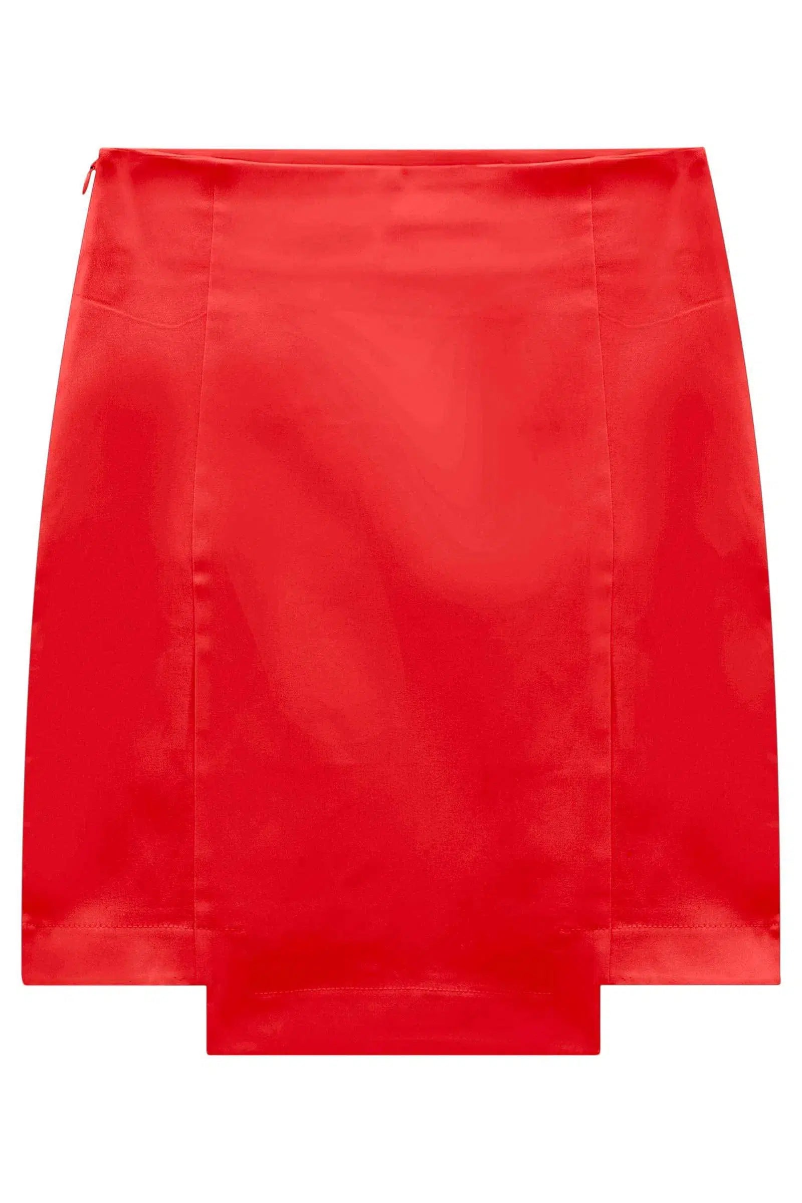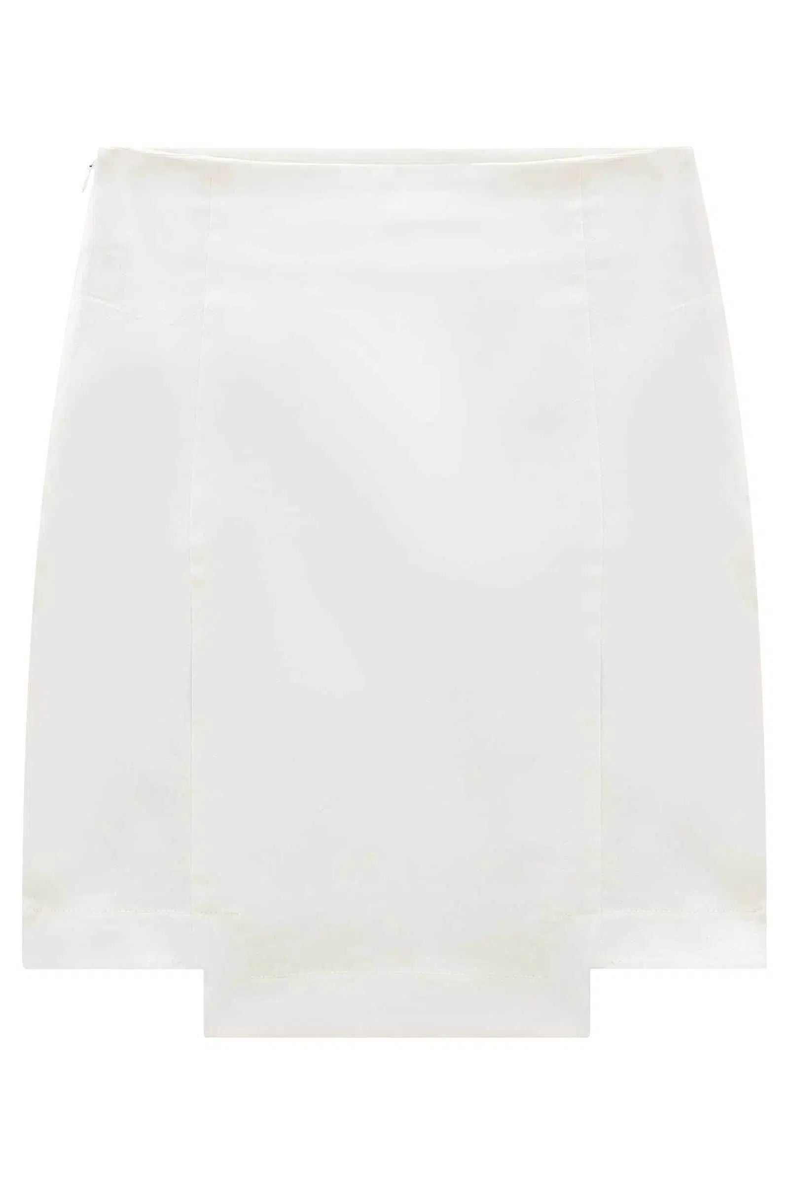 Mini saia recortes com laterais levemente mais curtas, zíper invisível na costura lateral. Em tecido bengaline.