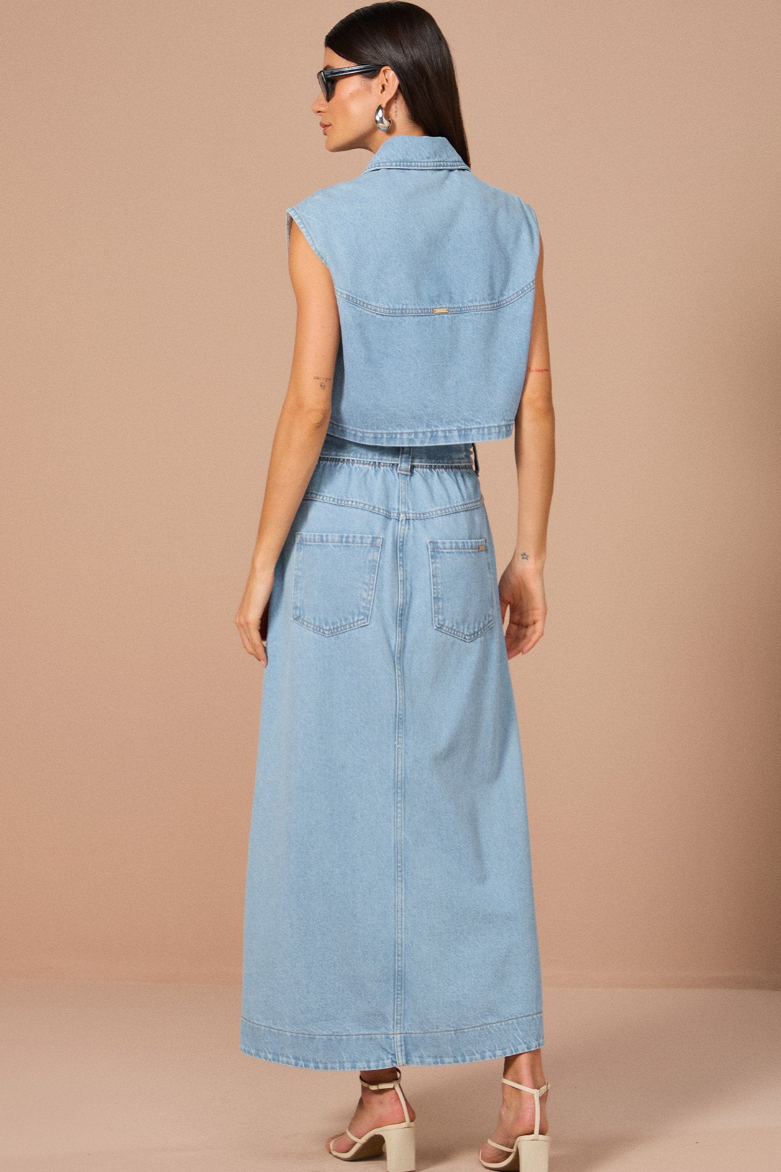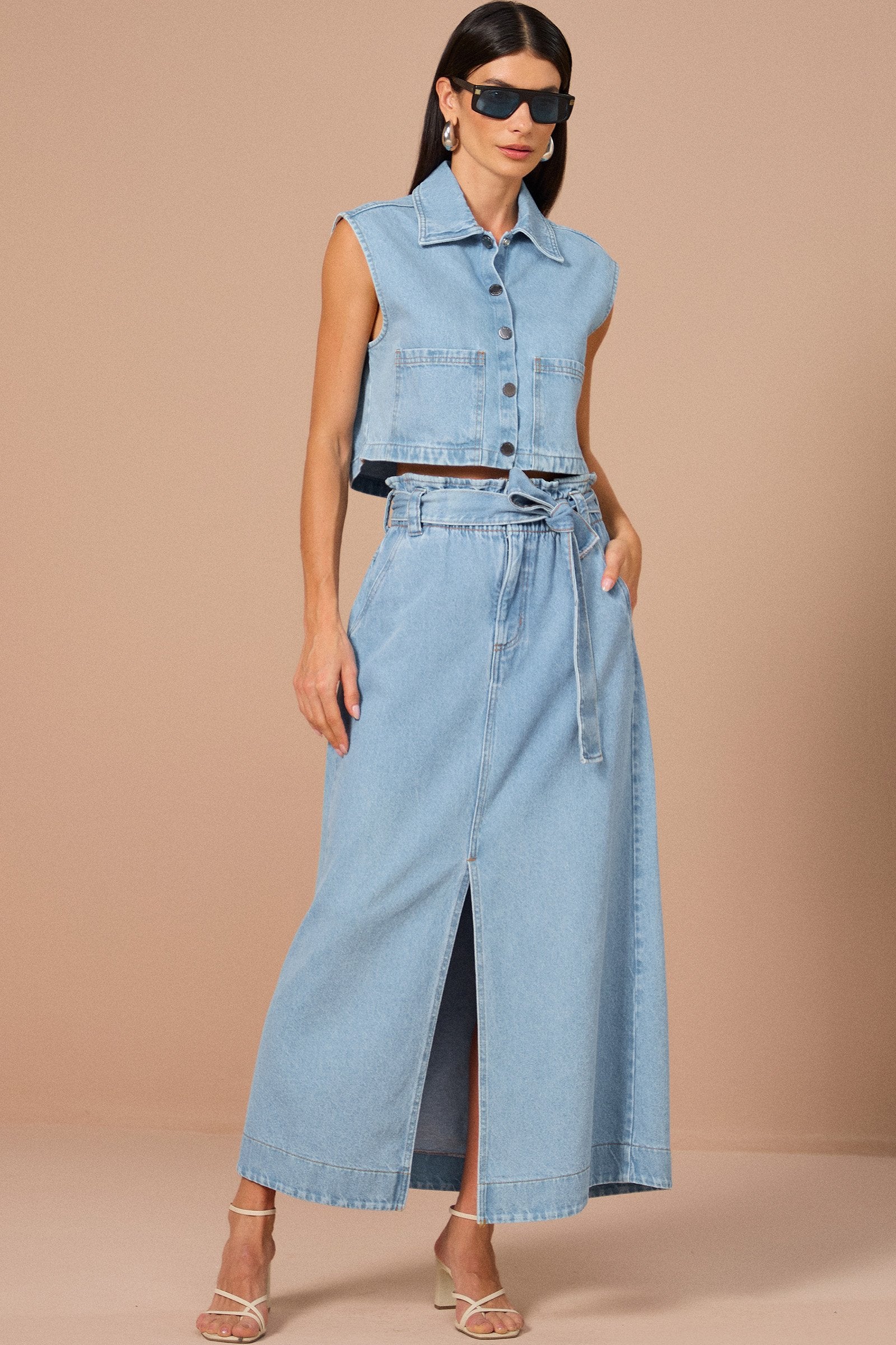 Sinta a leveza e a elegância com a saia clochard maxi midi com cinto em denim. Projetada para a mulher que não abre mão de conforto e sofisticação, esta peça conta com um caimento fluido e detalhes refinados. Na cor azul, um clássico atemporal e super estiloso, ela é a base perfeita para criar looks deslumbrantes, seja para um almoço com as amigas, um evento especial ou um passeio no fim de semana.