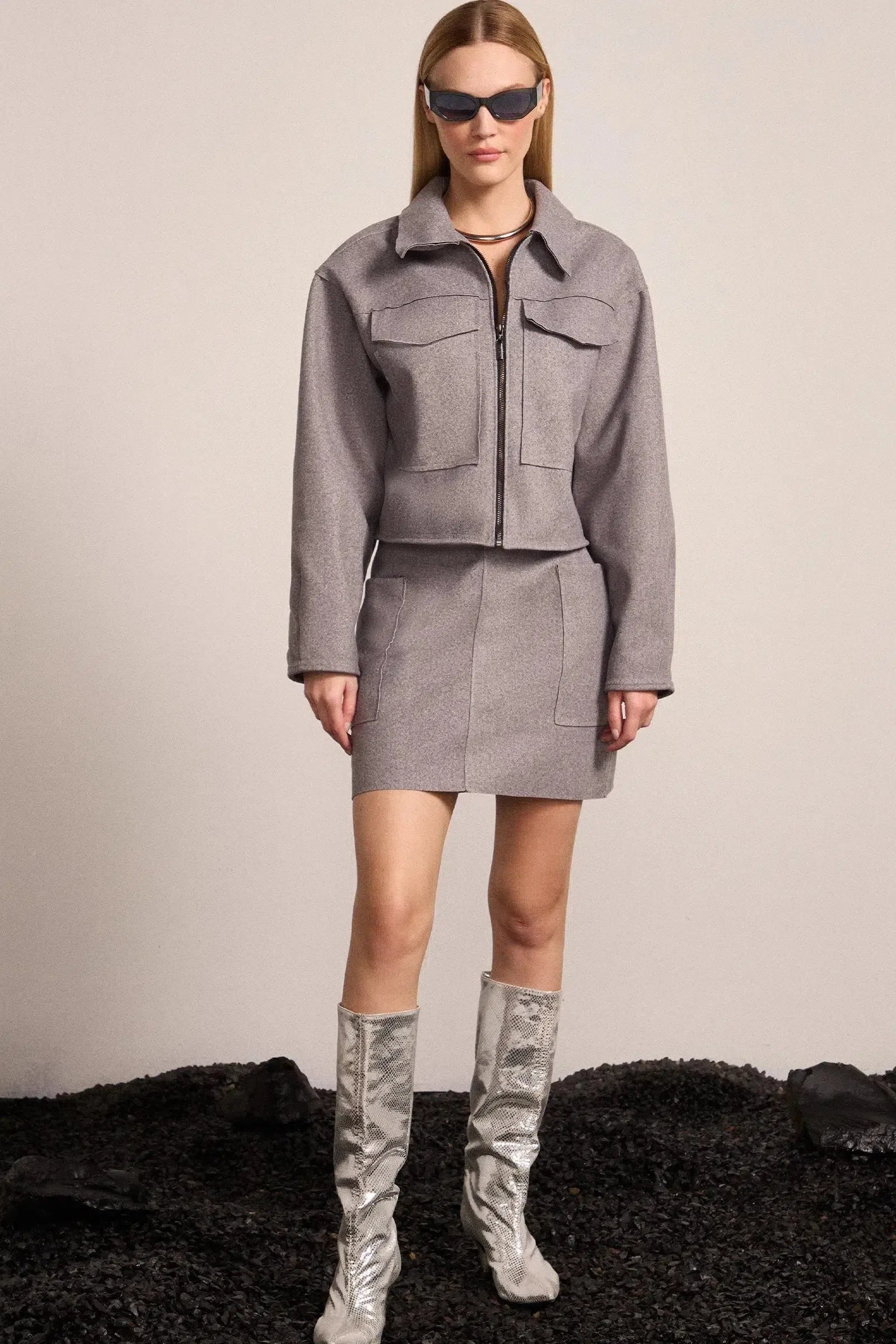 Saia Curta Cintura Alta em Lã Batida 79414 Linzzi