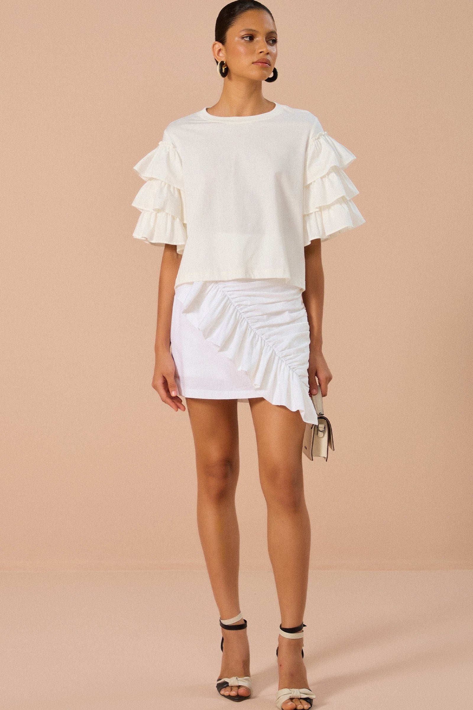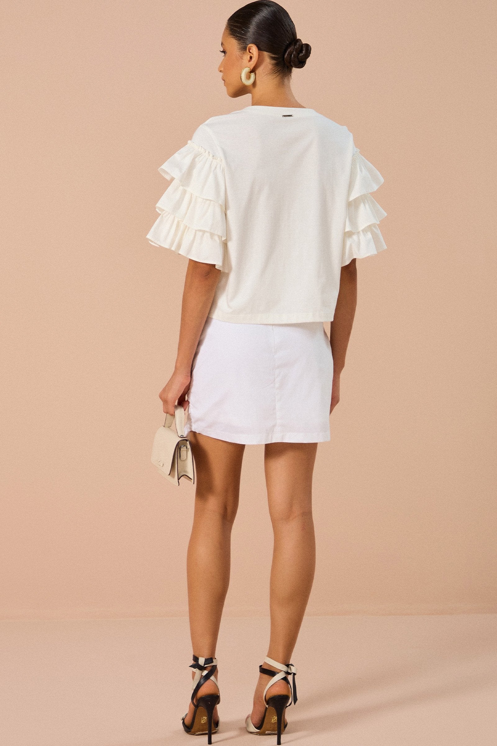 Shorts Saia com Babado em Tricoline com Elastano 83779 Linzzi